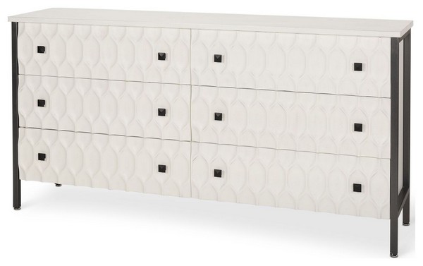 Savannah White Fir Veneer And Gray Metal 6 Drawer Sideboard