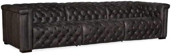 Savion Grandier Bellagio Gravel Leather Power Reclining Sofa With Power Headrest