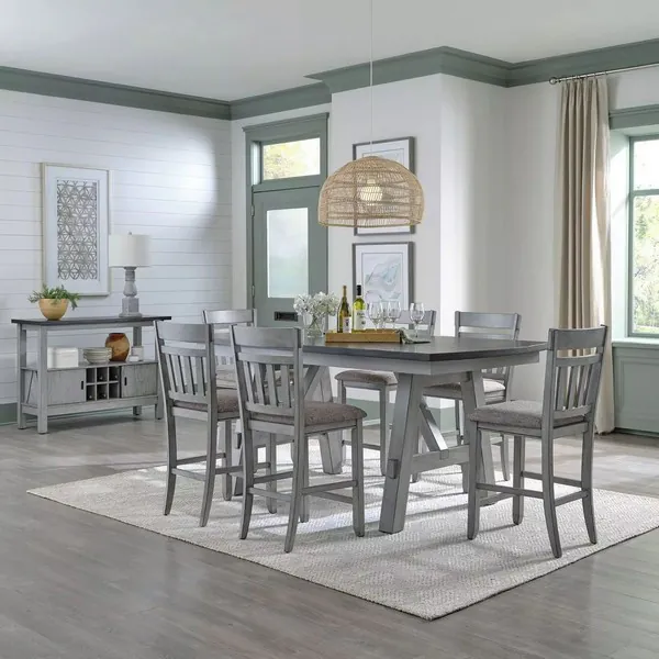 Seabrook Smokey Gray And Carbon Gray Trestle Extendable Dining Room Set