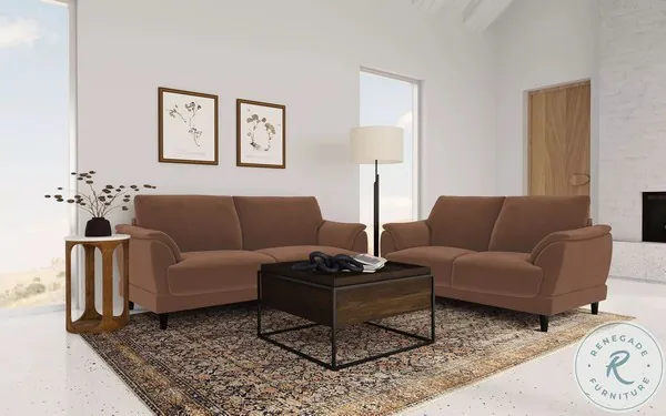 Selma Rust Velvet Crescent Arm Living Room Set
