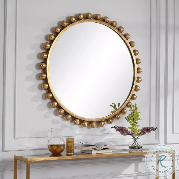 Seloria Walnut Wood Beaded Round Mirror