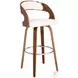 Add a touch of mid-century modern glamour to your home with the Shelly 30" Bar Height Swivel Cream Faux Leather and Walnut Wood Bar Stool from Armen Living. The retro silhouette exudes timeless appeal that would easily fit into any home regardless of the existing design theme. The Shelly kitchen stool features a beautiful wood frame and seat back that wrap around a luxurious high-density foam cushioned back and seat. Upholstered in soft faux leather upholstery, the Shelly provides a full mobility with a 360-degree swivel function that enables you to engage with your guests regardless of their placed in the room at parties or gatherings, making this ideal for entertaining. The open seat back provides breathable seating and allows for easy movement around your home. Available in a 26” or 30” seat height, the Shelly stool can easily incorporate into your kitchen, office, home bar, or den. The Shelly Swivel Faux Leather and Wood Bar or Counter Stool is available in your choice of a walnut wood finish with brown or cream faux leather upholstery or a black wood finish with grey faux leather upholstery.Features