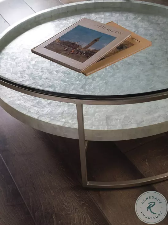 Signature Designs Champagne Foil And Capiz Shell Cumulus Capiz Large Round Cocktail Table