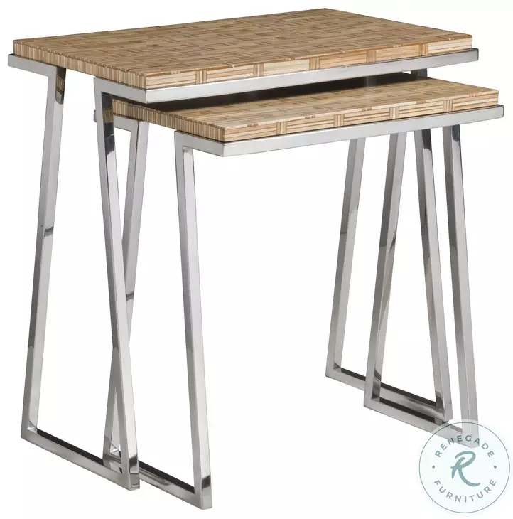 Signature Designs Basketweave And Polished Stainless Steel Thatch Nesting Tables