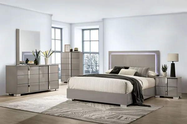 Sinistra Light Taupe Platform Bedroom Set with LED Light