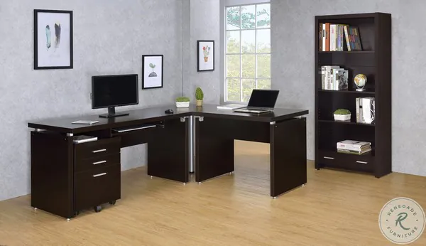 A sleek finish and clean lines make this a great addition to your home office. Add even more storage space to by adding additional file cabinets as well as the bookcase which features two storage drawers. This collection comes in a cappuccino color with a sleek finish and clean lines make this a great addition to your home office. Add even more storage space to by adding additional file cabinets as well as the bookcase which features two storage drawers. This collection comes in a cappuccino color.