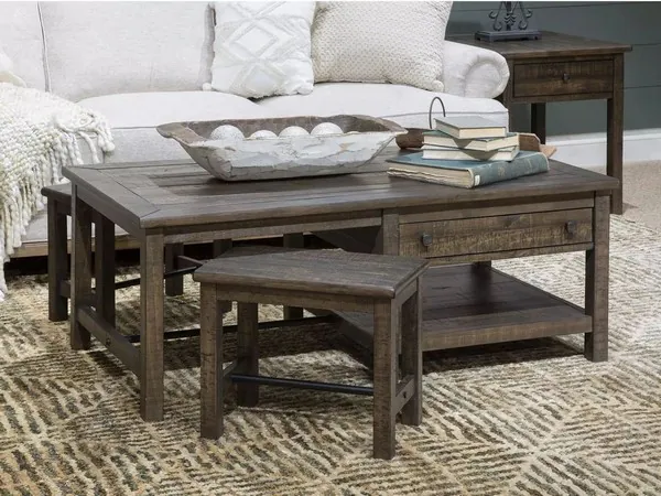 Smithton Dark Chocolate And Vintage Bronze Rectangular Occasional Table Set With Stools