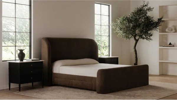 Sophia Brown Upholstered Storage Platform Bedroom Set