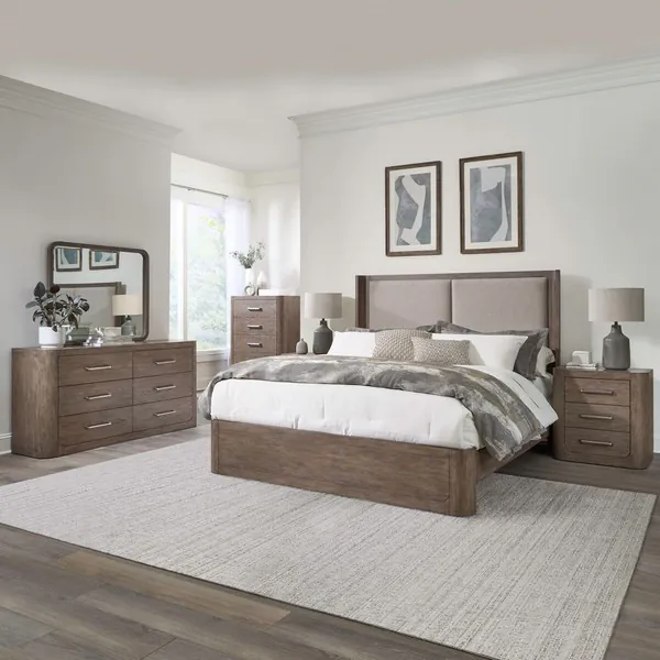 South Bend Burnished Clay and Textured Gravel California King Upholstered Shelter Bed