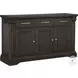 Dark rustics, traditional profiling, and elegant blends form the Southlake Collection. Oak veneer and solid acacia, finished in wire-brushed dark rustic brown, form the table, chairs, server, and additional seating bench. Stylishly-cut corners and an urn-profiled, double pedestal base provides further accent to the rectangular dining table. Contrasting the dark brown of the pieces is the grey-brown linen covering the seats and backs of the chairs and the top of the bench, providing for comfortable seating. Featuring nickel hardware in knobs and bars for additional accenting, the server provides the storage space for all your dining accessories.Features