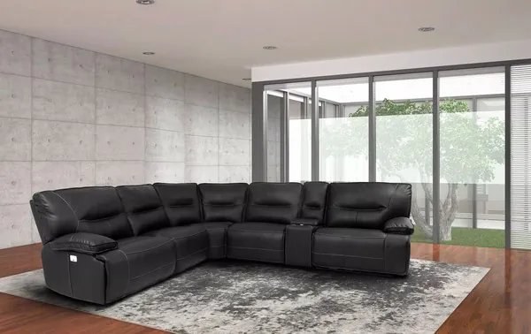 Spartacus Black 6 Piece Performance Fabric Power Reclining Sectional