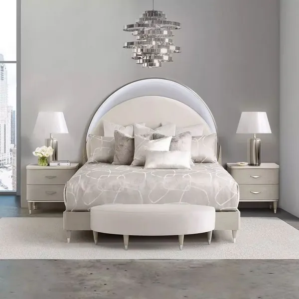 Stellar Grace Moonlight And Ivory California King Upholstered Panel Bed with LED Lights