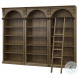 Stratton emulates the grand scale and timeless beauty of a gothic library. Distinguishing details include elegant arches, fluted corbels, dentil molding, and bead board back panels. Hardwood veneers have been wire brushed and intentionally distressed to present an authentic aged appearance and are enhanced by the rich toffee finish. The five step wooden ladder can be hung on metal bars for an added touch of nostalgia.Features