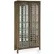 - Display Cabinet features two doors with metal fretwork over tempered glass four adjustable wood framed glass shelves antique mirror back panel one light with three intensity touch switch