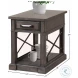 An elegant reflection of the rustic beauty found in Americas greatest landscapes, this beautiful Chairside Table from the Sundance collection makes a smart addition to any seating area. Its classic profile is highlighted with a hand-applied, multi-step finish in Smokey Grey and features decorative X-shaped crossbars and a bold drawer pull. Look below and find an open shelf ideal for storing books and magazines. Youll love how its Power Center with dual AC outlet and dual USB port makes it easy to keep your electronics charged and close at hand.Features