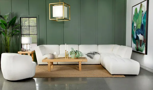 Wrapped entirely in a soft and supple, faux sheep skin upholstery, this contemporary Sunny Collection from Coaster Furniture invites you to kick back and relax in supreme comfort.