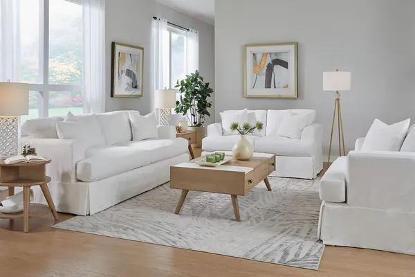 Sutton Snow Slip Cover Flared Arms Living Room Set