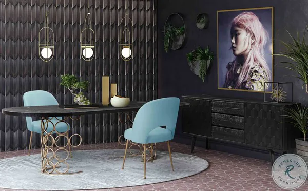 The Swell dining chairs offers the perfect blend of Mid Century Modern and Hollywood Glam. With sumptuous velvet upholstery and gold antenna shaped steel legs this collection is a definite winner and is versatile to match any decor.