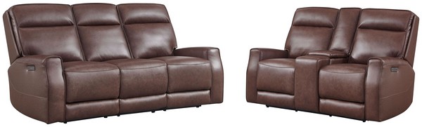 Sylvenne Brown Heritage Leather Power Reclining Console Loveseat with Power Headrest