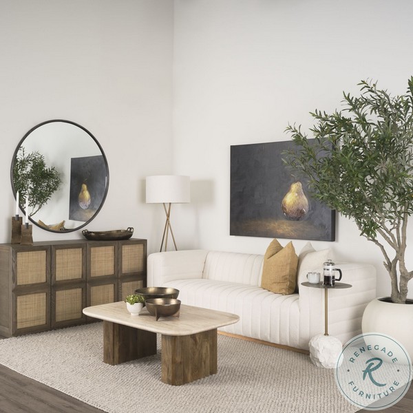 Symona Travertine And Mango Wood Rectangle Coffee Table