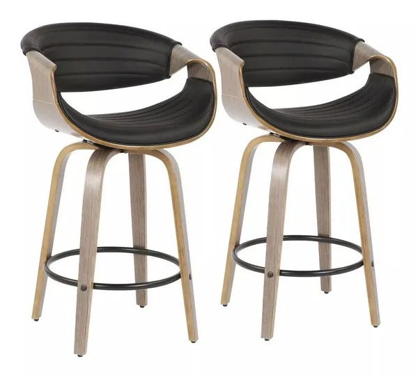 A curvaceous dose of Mid Century style, the unique design, and silhouette of the Symphony will look great pulled up to any counter Upholstered in a sleek faux leather accented with vertical tufting and walnut colored bent wood legs, the Symphony comes in a variety of colors to fit in any room.