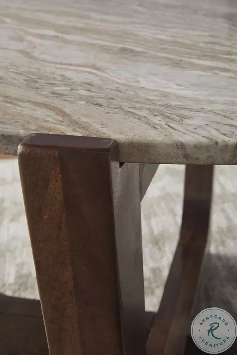 Tanidore Natural Marble And Warm Brown Round End Table