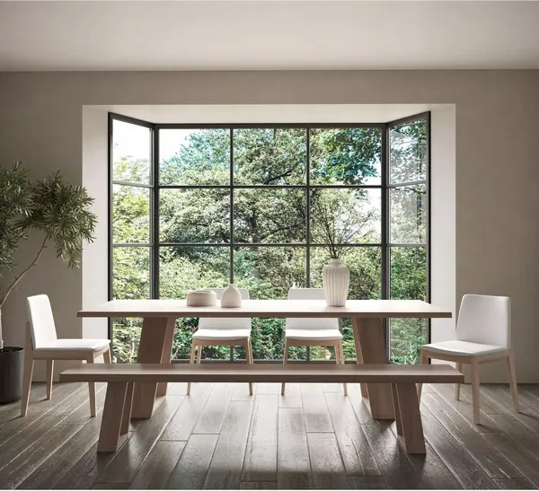 Tanya is simply classic design with an airy base and long tabletop. Brightened up sweetly with its light acacia wood finish, the natural wood grain patterning fits gently into any decor styles and large spaces. Set it best with the Tanya bench for a beautifully soft seating design.