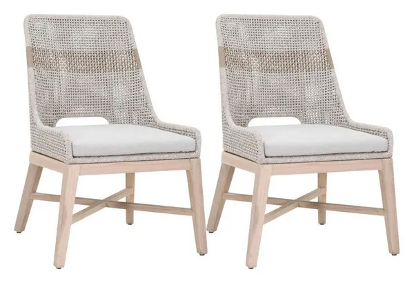 Tapestry Performance Pumice And Taupe White Flat Rope Dining Chair Set of 2