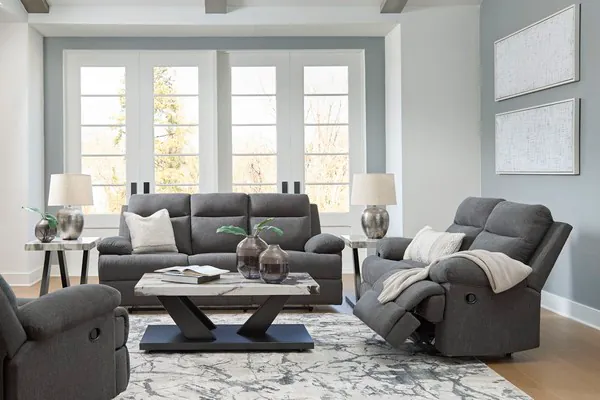 Tarrant Charcoal Reclining Living Room Set with Drop Down Table