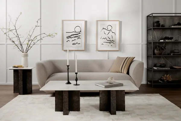 Terrell Raw Black And Polished White Marble Coffee Table