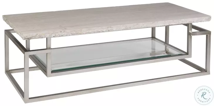 Signature Designs White Vein Travertine And Champagne Leaf Theo Rectangular Cocktail Table