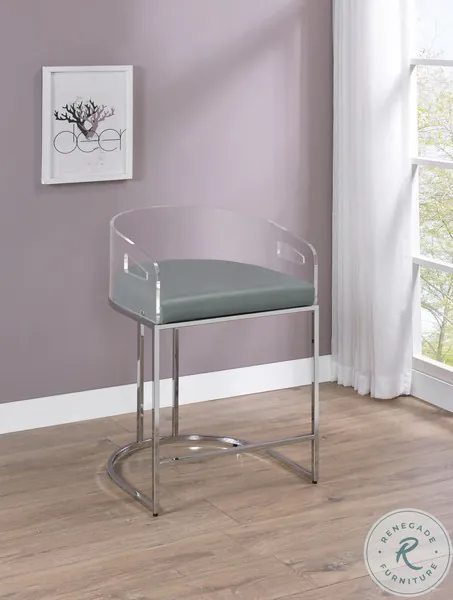 Thermosolis Grey And Chrome Acrylic Back Counter Height Stool Set of 2