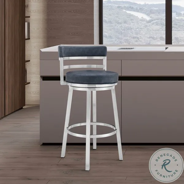 Titana Black And Brushed Stainless Steel Swivel 30" Bar Stool