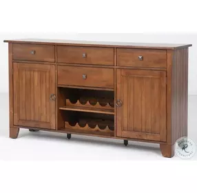 The Toluca Dining Collection is all about versatility. Constructed of Solid Rubberwood and finished in a 13-Step Rustic Amber Finish, pronounced distressing is incorporated to add personality and depth to the clean lines of this transitional dining group. The 132" Rectangular Dining table includes Three 24" leaves that store under the tabletop and expand the table from 60" to 132". There are two styles of Dining chairs, Ladderback and Slat Back, with solid wood seats that have been contoured for comfort. The oversized server is an impressive 66" wide and provides ample hidden storage along with removable wine storage for up to 10 bottles.