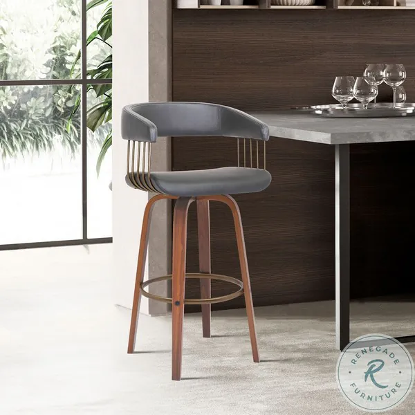 Topanga Walnut And Gray 26" Swivel Counter Height Stool