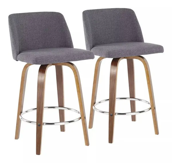 Toriano Walnut And Grey Fabric With Round Chrome Footrest Counter Height Stool Set Of 2