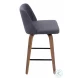 Toriano Walnut And Blue Fabric With Square Black Footrest Counter Height Stool Set of 2