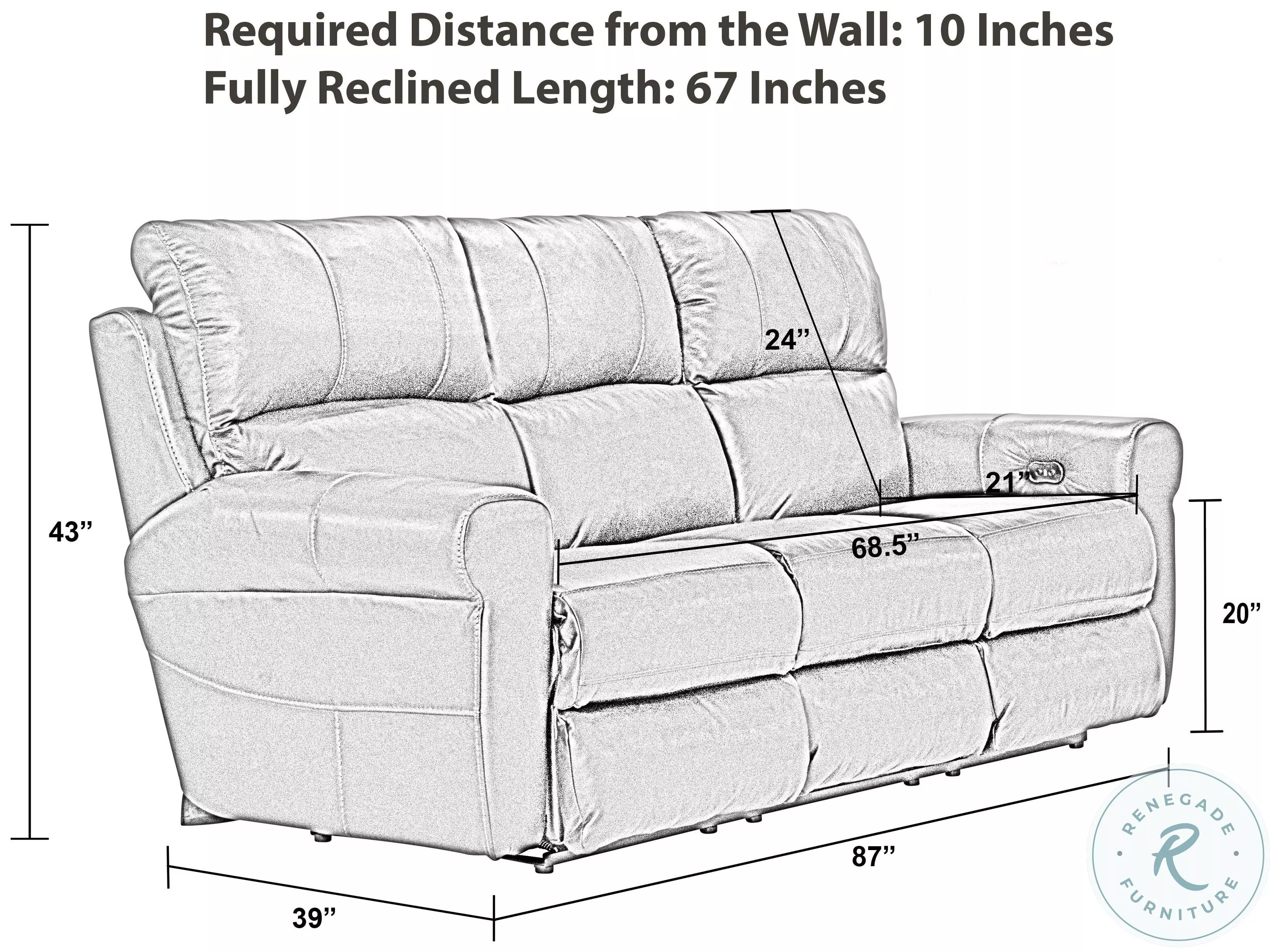 Torretta Putty Leather Lay Flat Power Reclining Sofa