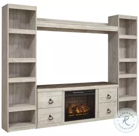 Trinell Rustic Brown 4 Piece Entertainment Wall with Electric Fireplace by Ashley FurnitureFeatures