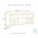 Warm rustic plank finish over replicated Oak grain and authentic touch. Tops of cases and headboard/footboard panels are captured with a nail trimmed corner piece. Rolling trundle storage box enables the option of storage or bed. Side roller glides for smooth operating drawers. Handles feature nailhead trim in a dark bronze metal finish. Slim profile dual USB charger located on the back of the nightstand tops.