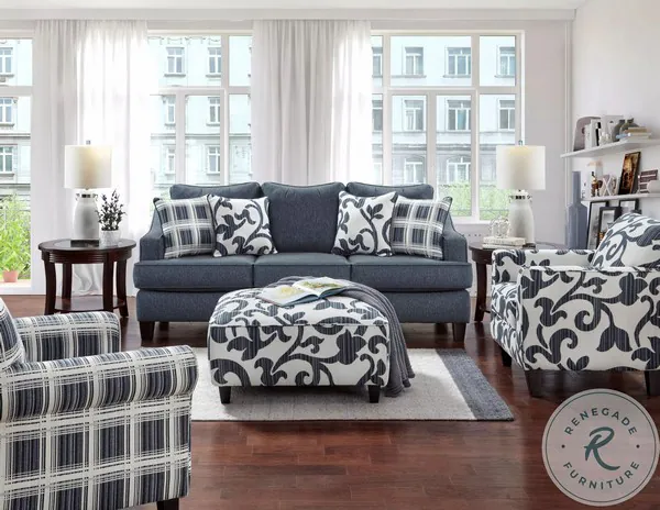Truth or Dare Navy Recessed Arm Sleeper Living Room Set