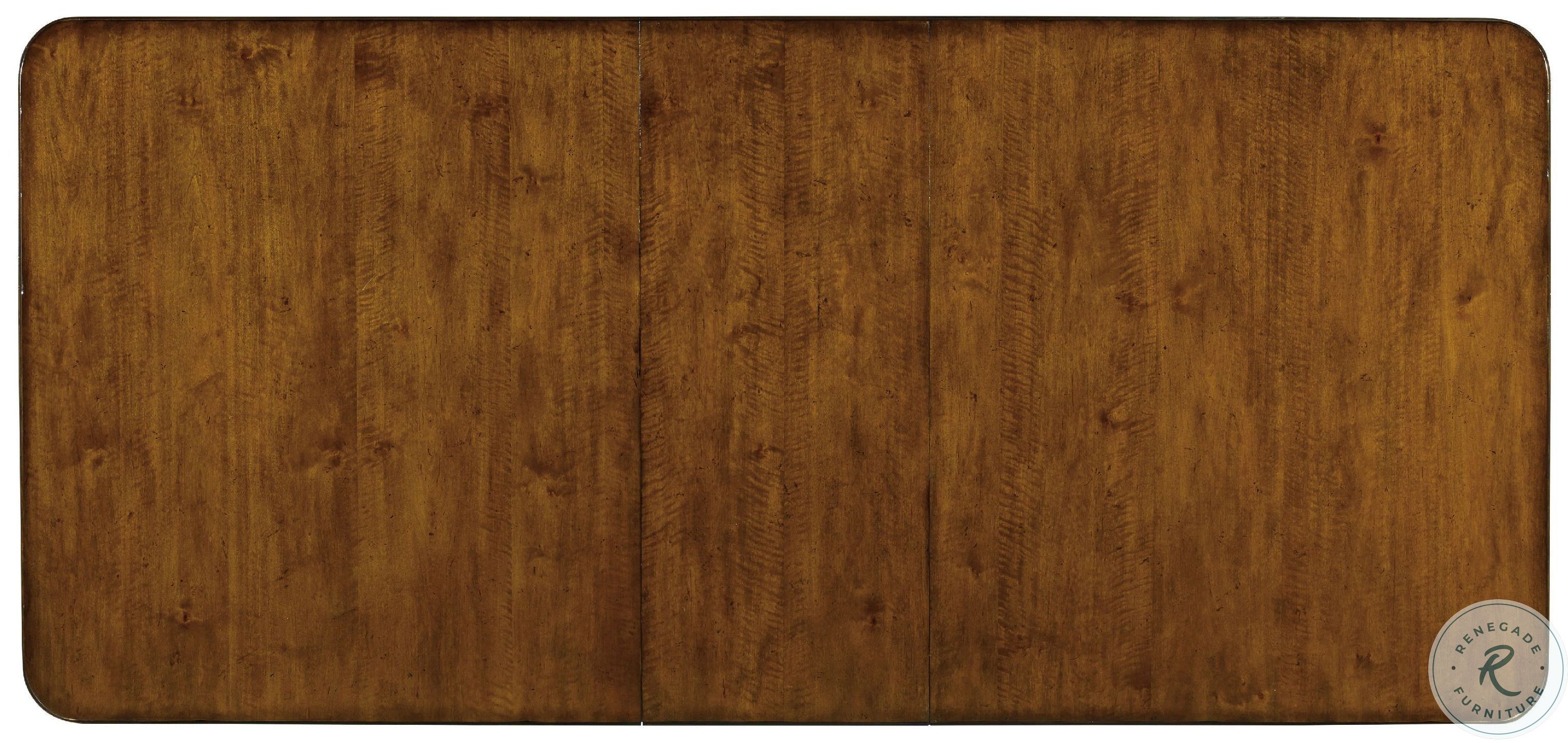 Exuding the grand style of a Manor Home, the Tynecastle Rectangular Leg Dining Table invites up to 10 guests to gather around and linger, admiring the warm chestnut-colored finish revealing the rich character of figured Alder veneers. With two 18-inch leaves, the table extends to 114 inches to accommodate up the 10 guests. Crafted of Poplar Solids and Figured Alder Veneers.Features