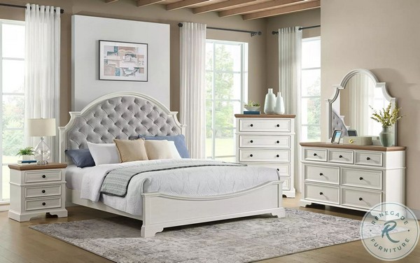 Ulysses Off White And Light Grey Queen Upholstered Panel Bed