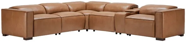 Uptown Tan Husk Leather 6 Piece Power Reclining Sectional