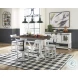 A high style choice for smaller spaces, the Valebeck Collection serves up the best in rustic farmhouse living. Two-tone finish pairs a brown tabletop with a distressed vintage white base for a double helping of charm. Black metal foot rests add such a distinctive twist.