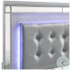 Featuring a lighted and upholstered headboard, the Valentino collection is brimming with features. Embossed inlays, mirrored borders, and turned feet all add to the unique styling of this suite.