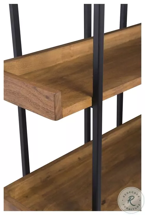 A sleek contemporary style, constructed with an iron frame and solid acacia with a light brown stain.Features