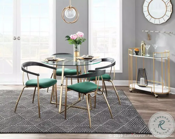 Add a little glamour to your dining room with the chic design of the Vanessa Chair by LumiSource. This dramatic chair is dressed to impress in a sleek velvet upholstery, metal frame with a gold finish and accented with a black wood backrest. Available in a variety of gorgeous velvet upholstery colors, choose the one that fits your space the best.