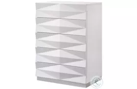 Verona Bedroom by J&M Furniture offers a fresh aim and outlook of the modern bedroom. With case goods featuring unique 3D surfaces, this white lacquered finish set will enhance the look of bedrooms of different sizes and colors. The leatherette headboard provides elegance as well as a classic look to the bedroom set. Whether choosing the entire set, its individual platform bed, or any of the case goods, you can rest assured that this quality furniture is meant to last. Our case goods are equipped with full extension glides.