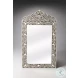 This magnificent Wall Mirror features old world craftsmanship. No two mirrors are ever exactly alike as each piece is handcrafted takes weeks of painstaking effort. The intricate patterns covering the piece are created from white bone inlays cut and individually applied in a field of brown by the hands of a skillful artisan. Delicate sheen overall says this piece is made for a Raj's palace. Wonderful in entryway hall boudoir or powder room.Features